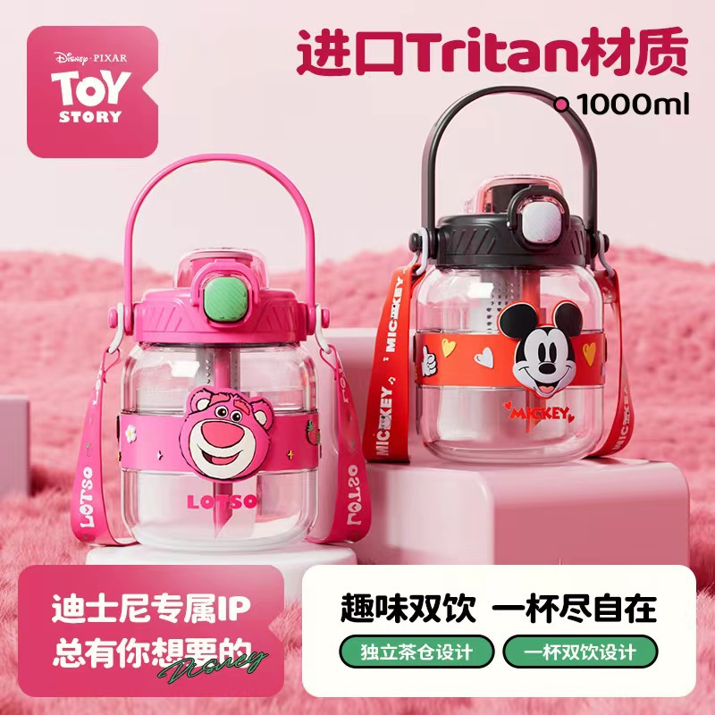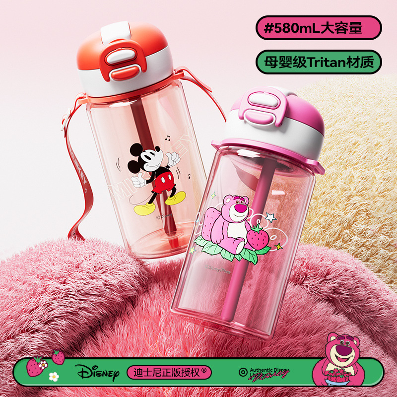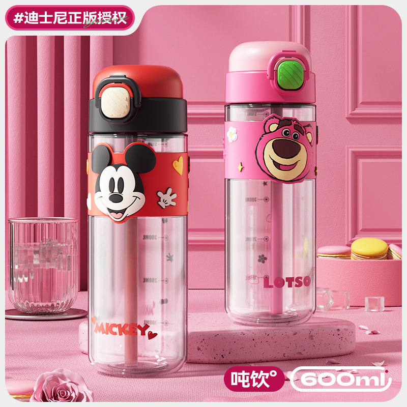 Strawberry Bear Mickey plastic cup, high appearance level, cute and portable, summer straw direct drinking water cup, girls' double drinking with handle