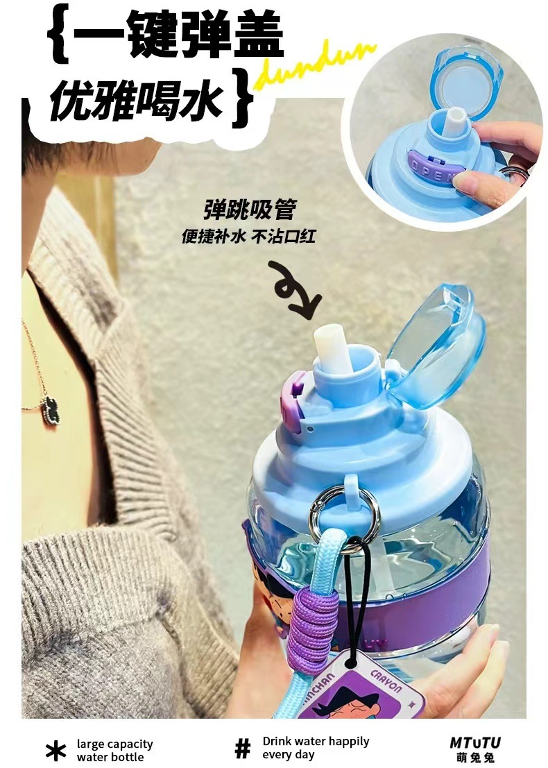New bouncing space cup, portable and trendy plastic cup, large-capacity water cup, convenient straw cup for outdoor sports