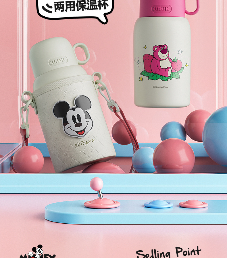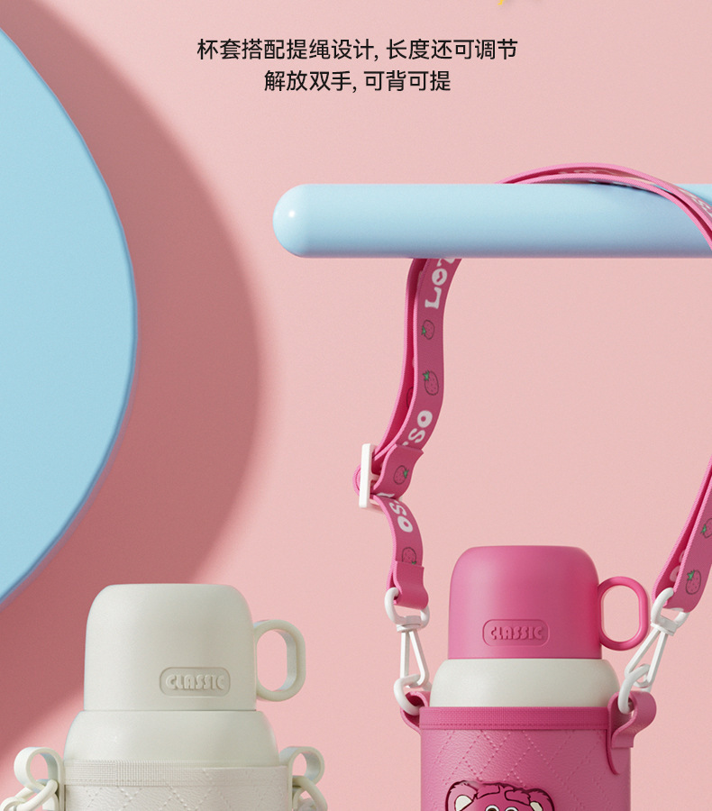 The new genuine co-branded insulated children's school water cup portable Strawberry Bear is a bestseller with a high appearance level